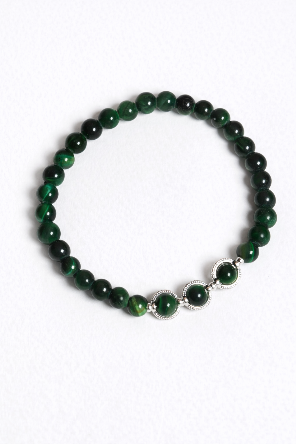 - Genuine Green Tiger’s Eye with rich, deep green tones