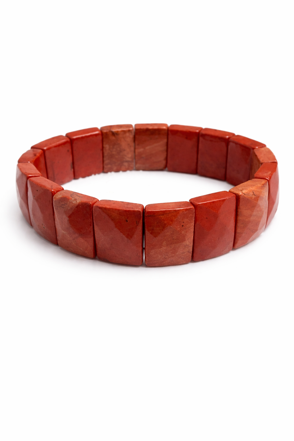 Bold and grounding, this Red Jasper faceted bracelet features richly polished rectangular stones in warm, earthy red tones. Known as a stone of strength and stability.