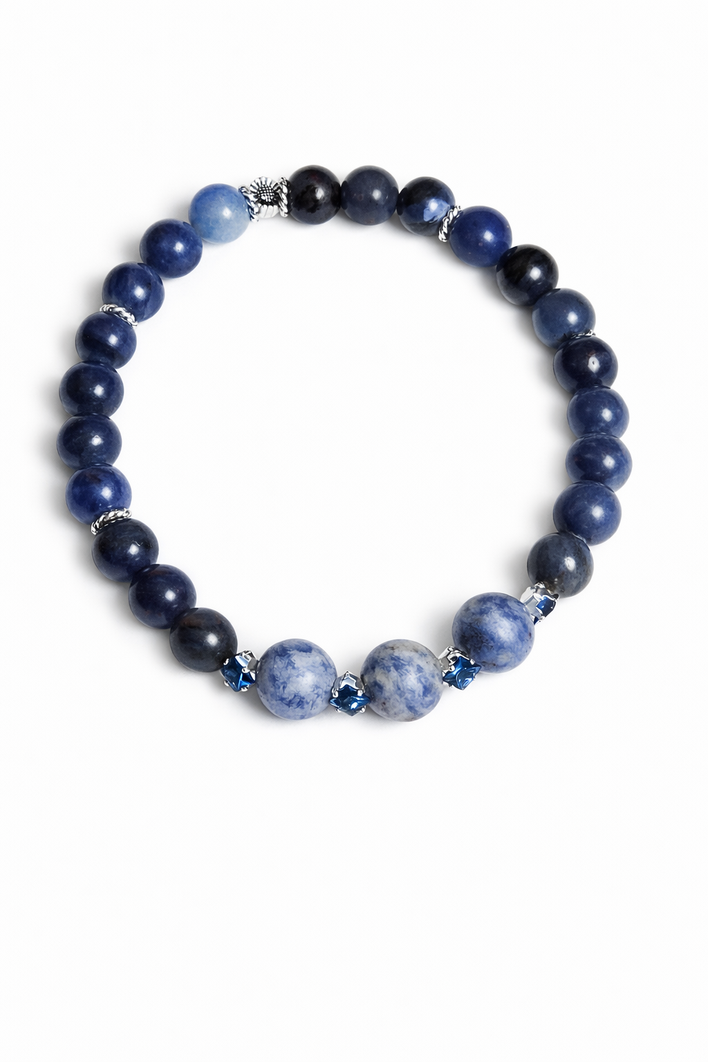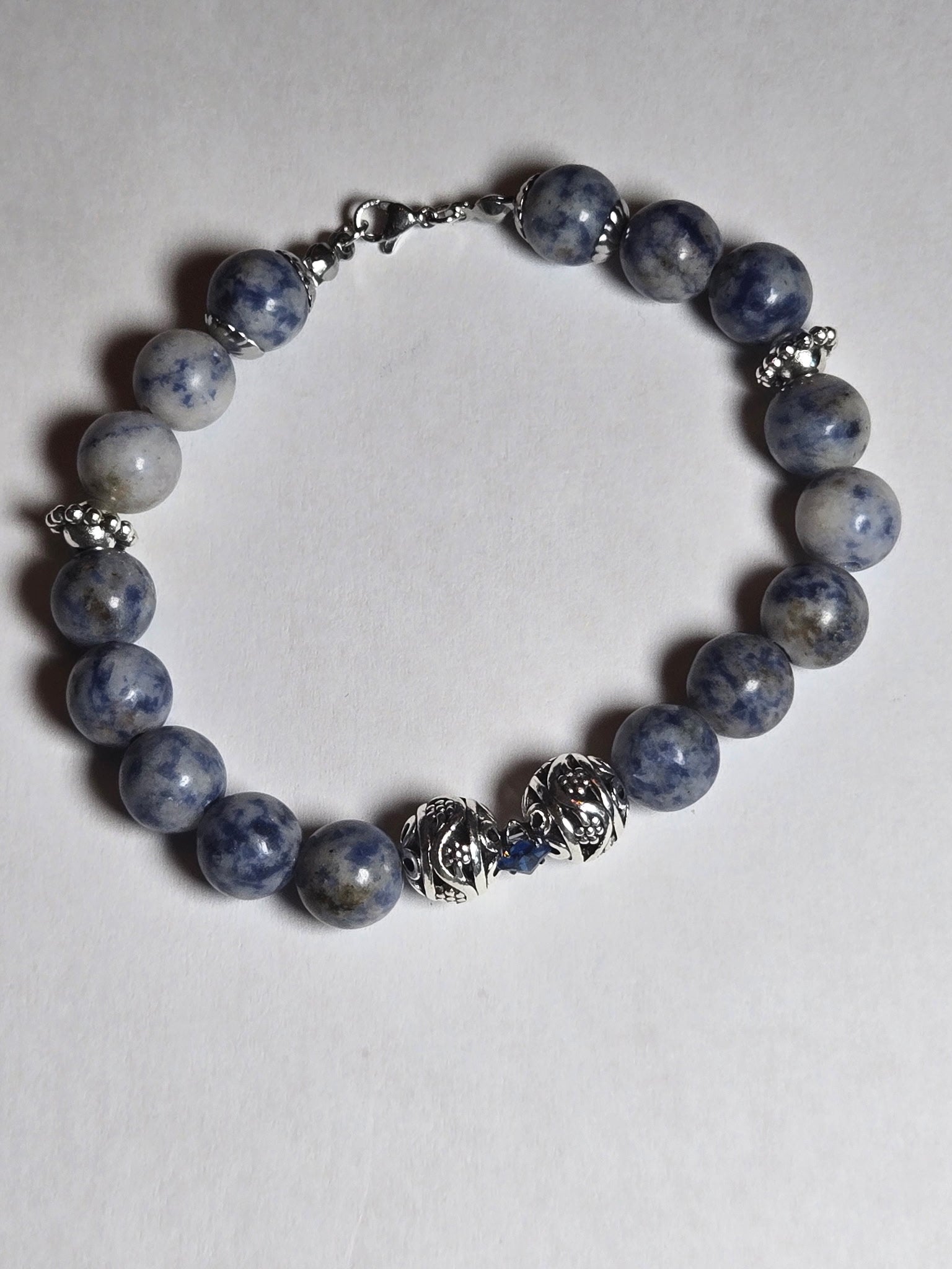 Sodalite & Blue Jasper Bracelet with Crystal & Silver Spacers