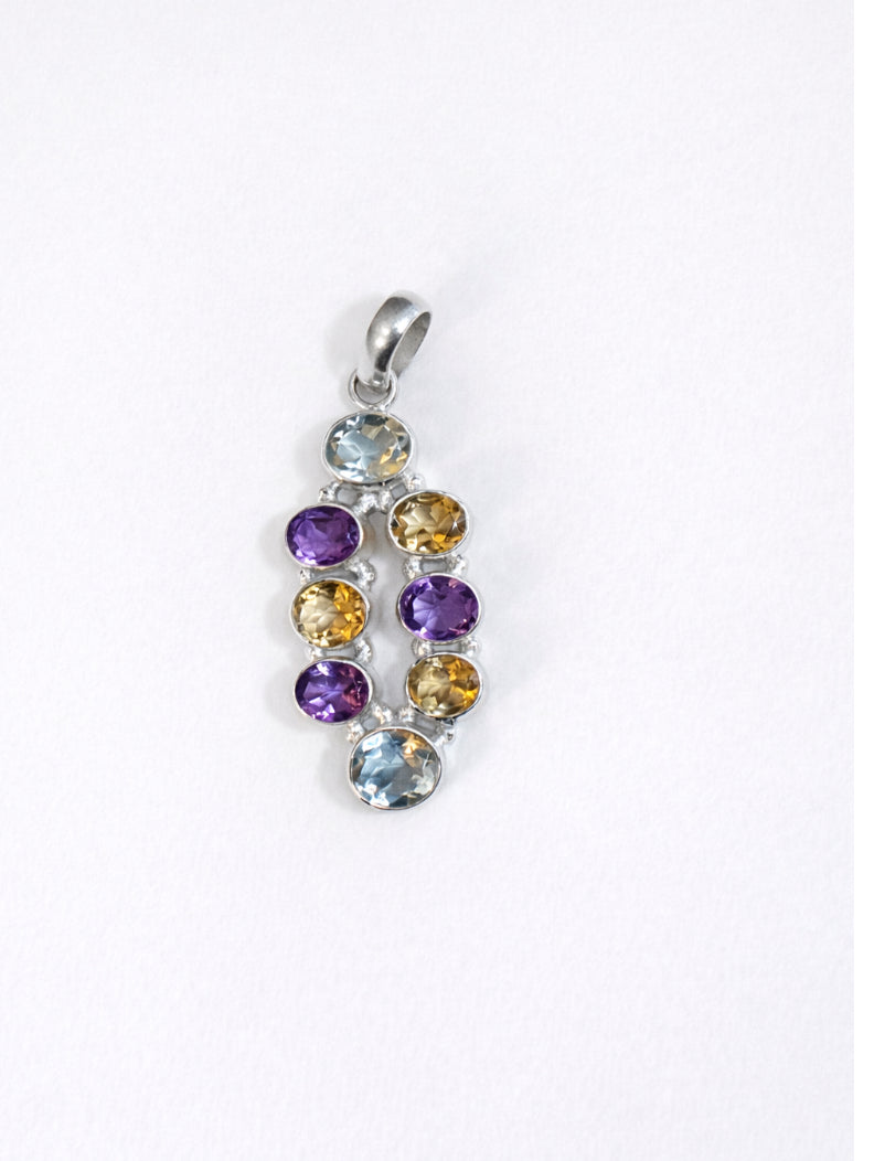 This vibrant pendant features a harmonious mix of natural gemstones arranged in a balanced, eye-catching design. Faceted amethyst, citrine, and prasiolite shimmer beautifully as they catch the light, creating a lively blend of purple, golden yellow, and soft green tones. Set in polished 925 sterling silver, this pendant offers a colorful yet refined look that’s easy to wear every day or dress up for special occasions.