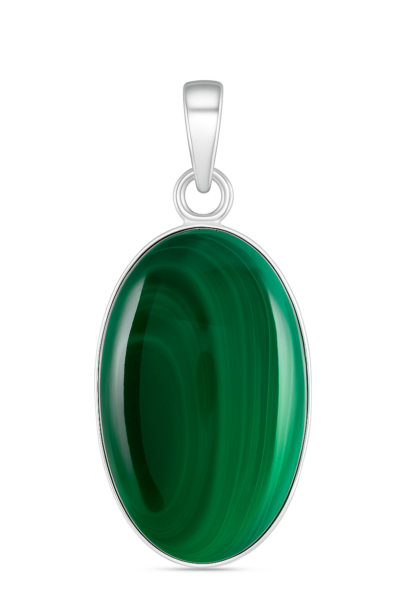 This elegant pendant showcases a polished oval Green Malachite gemstone, known for its rich emerald hues and mesmerizing natural banding. Set in a sleek sterling silver bezel, the stone’s glossy finish captures light beautifully, highlighting its depth and character. A timeless piece that balances bold color with refined simplicity—perfect for adding sophistication to any jewelry collection.