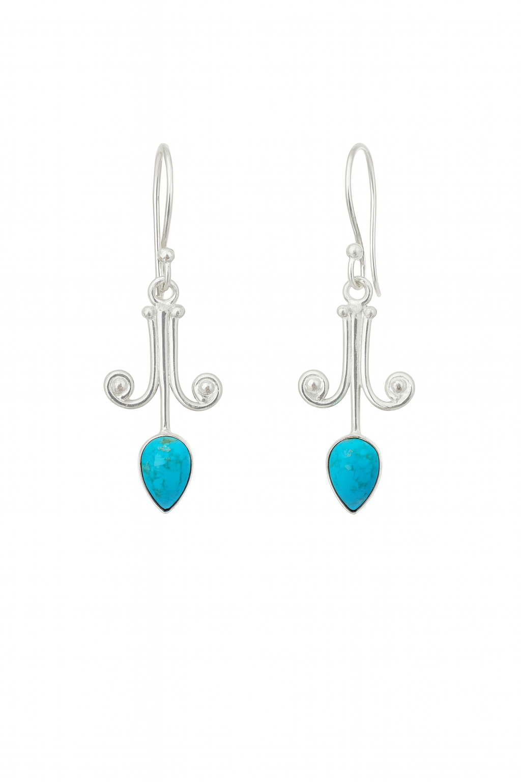 Sleeping Beauty Turquoise Teardrop Scroll Earrings