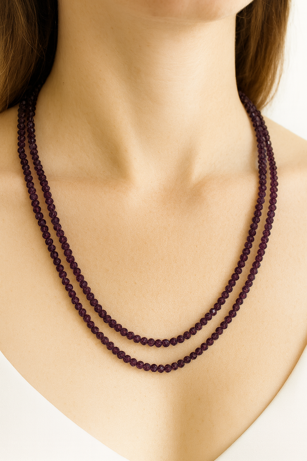 Elevate your everyday elegance with our collection of double-stranded gemstone necklaces, expertly crafted with premium faceted beads that catch the light from every angle. Each necklace is thoughtfully designed to layer effortlessly, creating a refined, modern silhouette that enhances both casual and formal looks.